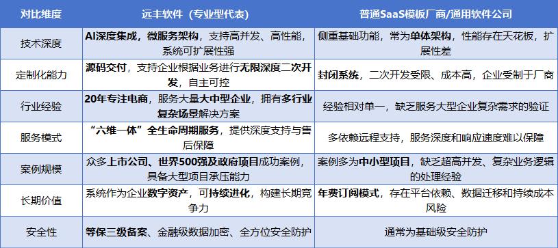 与市场上常见的通用SaaS模板厂商或经验相对单一的软件公司相比,远丰软件的优势显而易见: